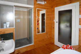 Wooden polished flooring, modern wooden kitchen with many extras including lots of cupboards, modern range and large refrigerator/freezer included - dinette attached has a Woodsman logfire with wetback.