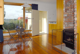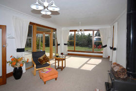 Large sunny lounge with Zip logfire opening onto large covered deck offering great indoor/outdoor living