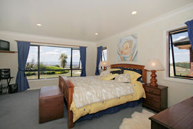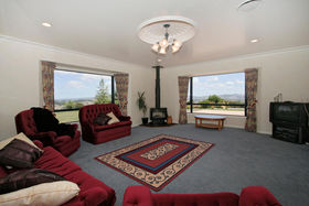 Outstanding 360° views of sunsets, sunrises & Maungatautari Mountain from the elevated, modern 5-bed home.