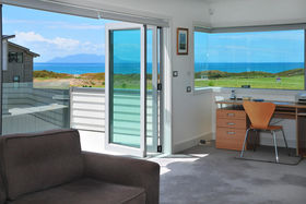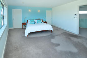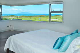 The upstairs master bedroom and adjoining lounge/media room afford stunning views out to little Barrier and Omaha Bay, and a large deck off this area provides another space to take in the vista and enjoy the sun.