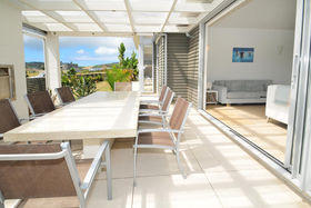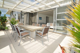 One level living, this property can sleep 12 people in 4 bedrooms comprising of two double bedrooms, one with an ensuite, large open plan dining/kitchen and living area opening onto an incredibly sunny courtyard with a sheltered entertainment area. All bedrooms lead from a tiled foyer and the separate entertainment room has two adjoining bedrooms consisting of 2 bunk beds each plus double beds.
