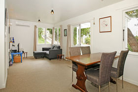 This 2 bedroom bungalow was built as the gardener's cottage circa 1990. The open plan lounge, kitchen and dining look out onto the large lawn and circle of mature tress which makes it exceptionally sheltered and private. Also featuring a separate laundry and drive on access with off street parking for 2-3 vehicles. Ideal for further expansion or a superb site for a larger new home. Rateable Value $420,000.00