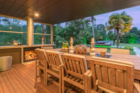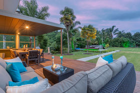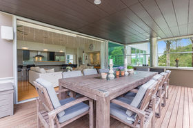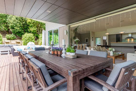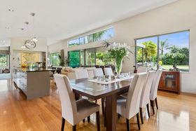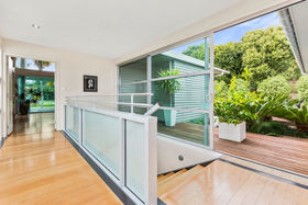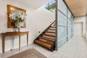 Stroll across tropically landscaped deck from the master suite to the kitchen, or take the glazed walkway in the dramatic light filled atrium.