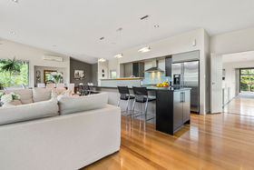 Beautifully people-friendly, the way this north facing home has living linked to the lawn, with a nice delineation between casual and formal space, all superbly appointed with heaps of 'cool' clever cabinetry.