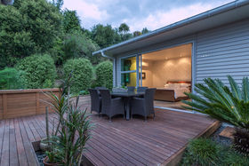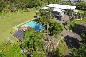 The 5410m2 property has ample space for play, a concealed utility and vegetable garden at the rear and parking for a party's worth of cars onsite. The double garage extends to a workshop/extra parking, beside which is a sail covered boat park shelter; even a sink for gutting all those fish you catch in the harbour nearby.
