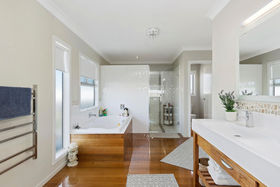 Downstairs two bedrooms and a second kitchen provide an apartment-like appeal with access to the bottom entertainment decking and established gardens. Contained and accessed either internally or via a separate road-facing sliding door the studio-style fourth bedroom boasts its own rumpus area, bathroom facility, kitchenette and private courtyard.