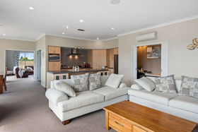 The home was built in 2007 and spans 258sqm including a welcoming entrance way which leads to a formal living room and an open plan kitchen dining and sitting room that includes a functional computer nook or office. The kitchen is well appointed, modern in design with plenty of storage and both living rooms fully open out onto approximately 85sqm of north facing decking. Accommodation is provided by four spacious bedrooms each with built in wardrobes and the main bedroom enjoys its own ensuite and walk in wardrobe. The home is very well heated and air conditioned including log burner, gas fire, heat pump, HRV home ventilations system and heat transfer system all in a fully insulated, double glazed home. Other features of the home include great storage, large double garage with internal access and separate laundry.